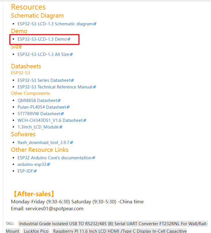 https://spotpear.com/wiki/ESP32-S3-1.3-inch-LCD-ST7789-240x240-Display-Screen.html#Resources