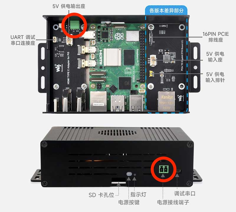 I tried to power my RPi5 with the green connector, on the backside, with a 5V/6A (30W) power supply, but the RPi doesn't work properly; the boot sequence hangs before the end. When I boot with the USB C power supply (the RPi model, 27W) everything runs smoothly. I have an M.2 NVME disk, a SD card, an external USB3 hard disk (5TB)