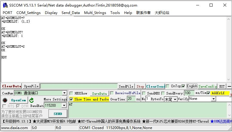 * By default, SIM card 1 is selected. You can use the following commands to check and confirm: