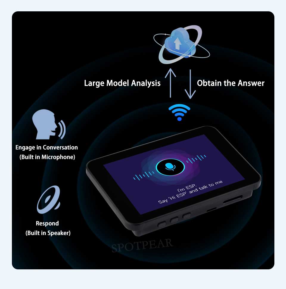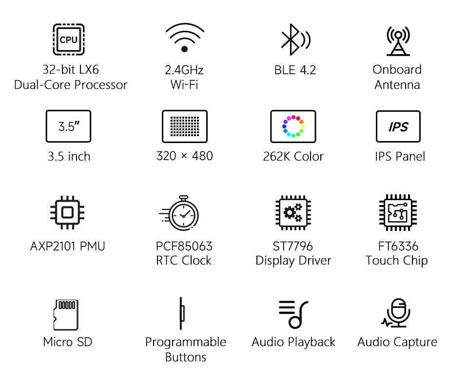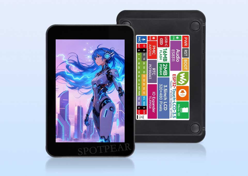 Designed by Waveshare, this product is a highly integrated development board based on ESP32. It comes with a 3.5-inch high-definition capacitive IPS touch screen, a power management chip, an RTC, and an audio codec chip, suitable for learning and secondary development. It supports multiple functions including AI voice interaction and Bluetooth music playback.