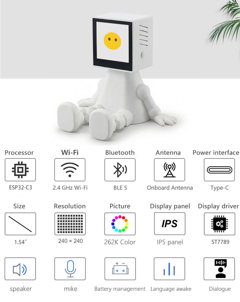 ESP32 AI Voice Chat Robot 1.54inch Development Board with 1.54 inch LCD Display Screen Deepseek