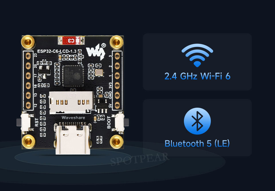 ESP32-C6 LCD Development Board 1.3 inch Display 1.3inch Screen ST7789 240x240 Mini TV SD-Port QST LVGL For Arduino