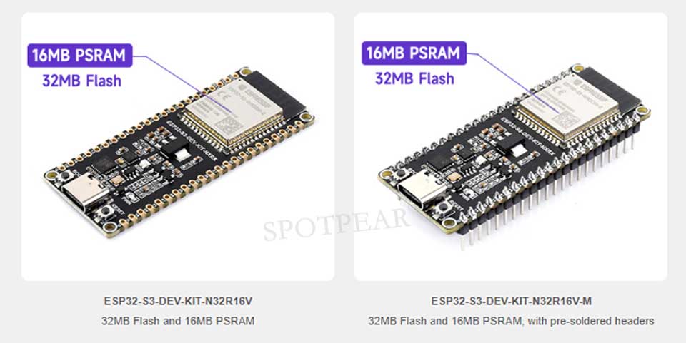 Adopts ESP32-S3-WROOM-1 series module, which is equipped with a dual-core Xtensa 32-bit LX7 processor with 240MHz running frequency, built-in 512 KB SRAM (TCM) and 8MB PSRAM; Onboard CH343 and CH334 chips for USB and UART development via USB-C port. Compatible with the pinout of ESP32-S3-DevKitC-1 development board, more convenient to use and expand a variety of peripheral modules.