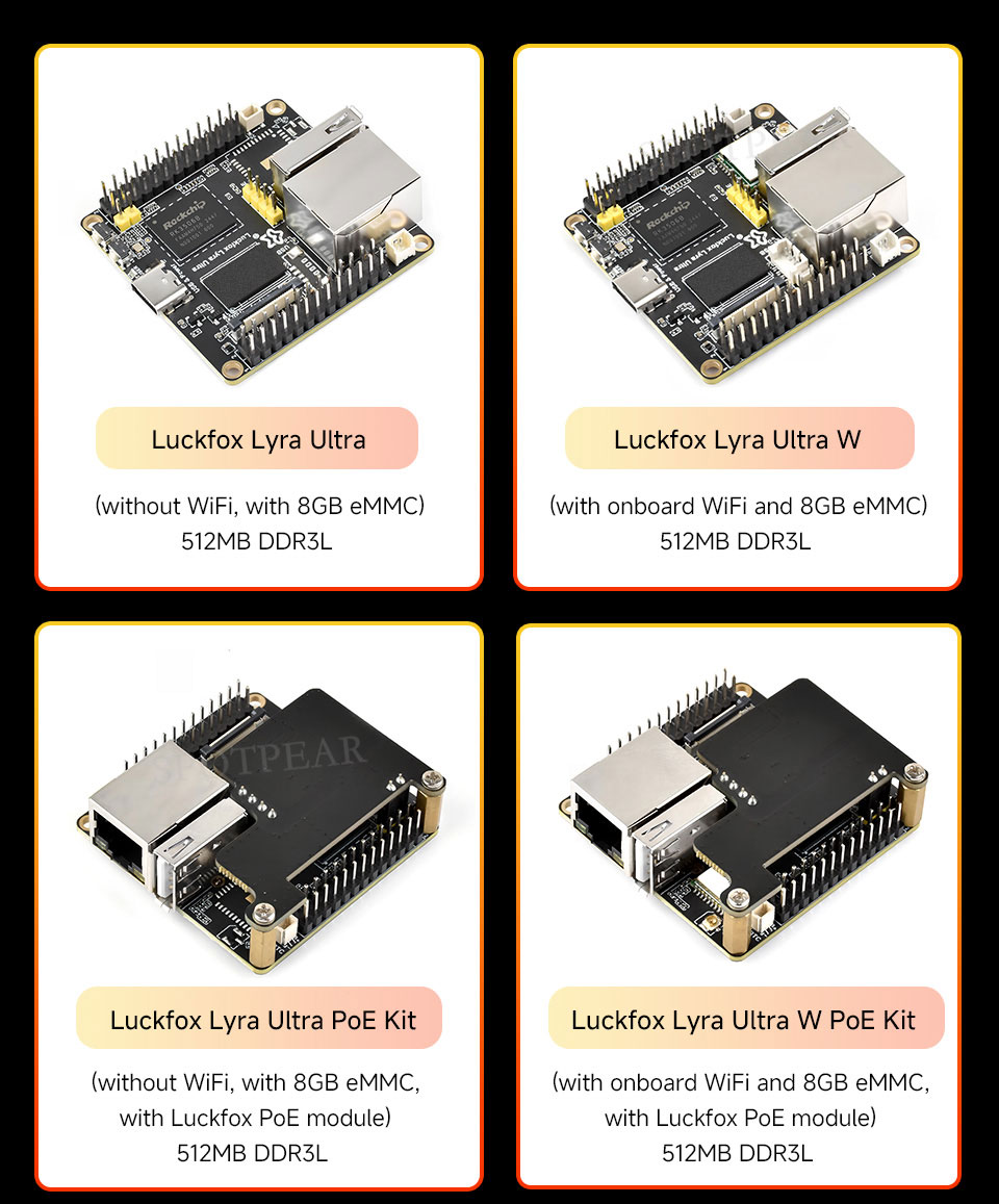 | Specification | Luckfox Lyra Ultra | Luckfox Lyra Ultra W | ||||