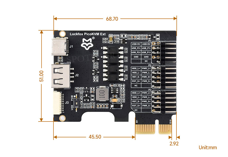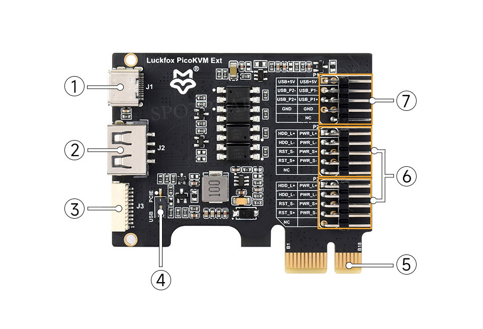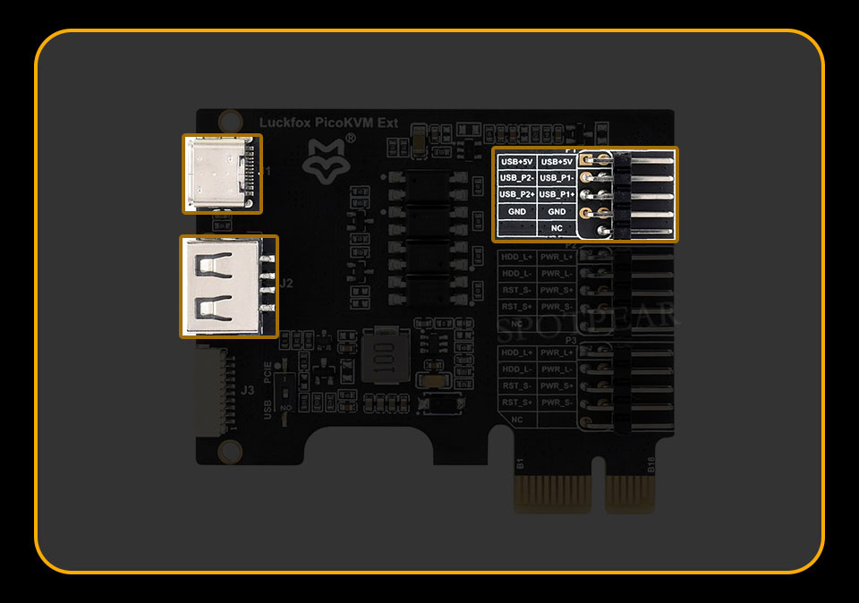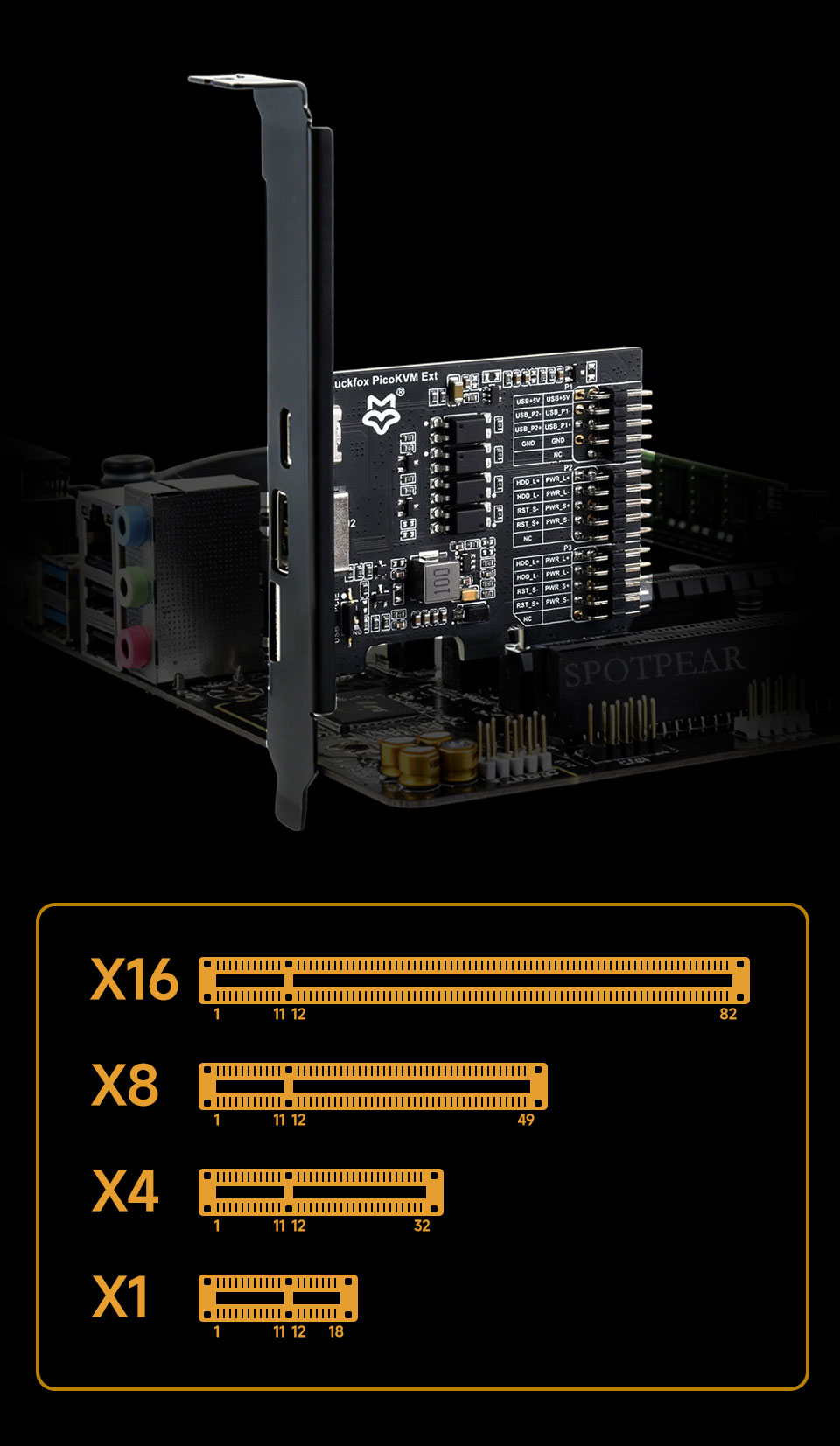 Luckfox PicoKVM Ext Expansion Board, Compatible With PCIe ×1 / ×4 / ×8 / ×16 Slots, Adapting Motherboard USB Ports, Works With Luckfox PicoKVM For Remote Power Management