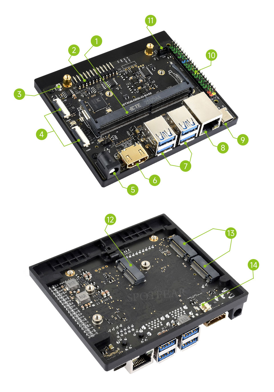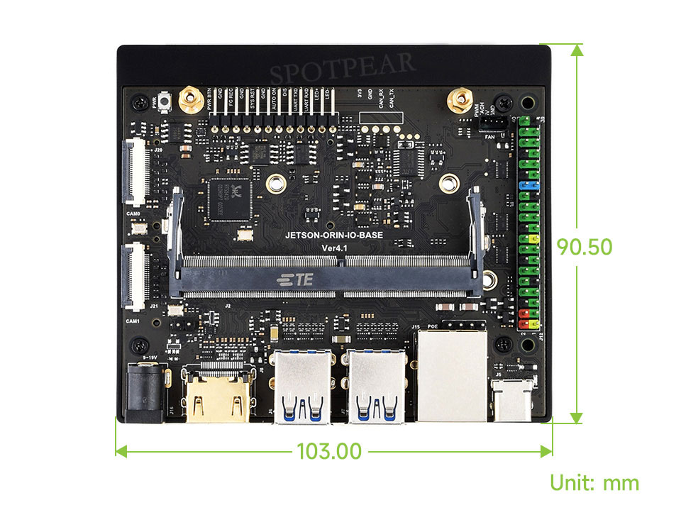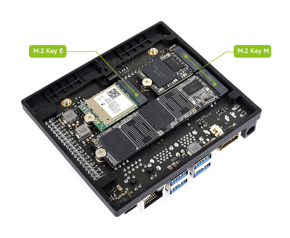 Based on Jetson Orin Nano and Jetson Orin NX module, with HDMI video output port. Except for the video output interface, it provides almost the same peripheral interfaces, size and thickness as the Jetson Orin Nano Developer Kit (Official Orin Nano kit), which is suitable for users to develop their applications and apply into various AI projects.