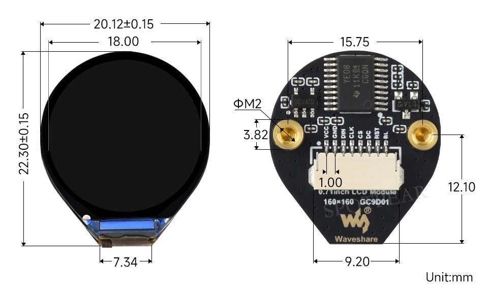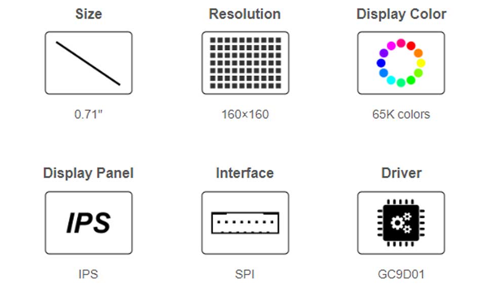 | OPERATING VOLTAGE | 3.3V / 5V | RESOLUTION | 160 × 160 pixels |