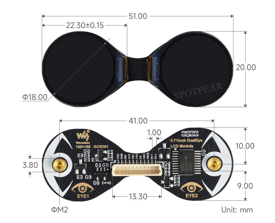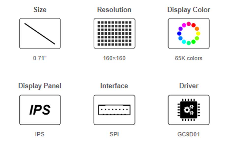 | OPERATING VOLTAGE | 3.3V / 5V | RESOLUTION | 160 × 160 pixels |