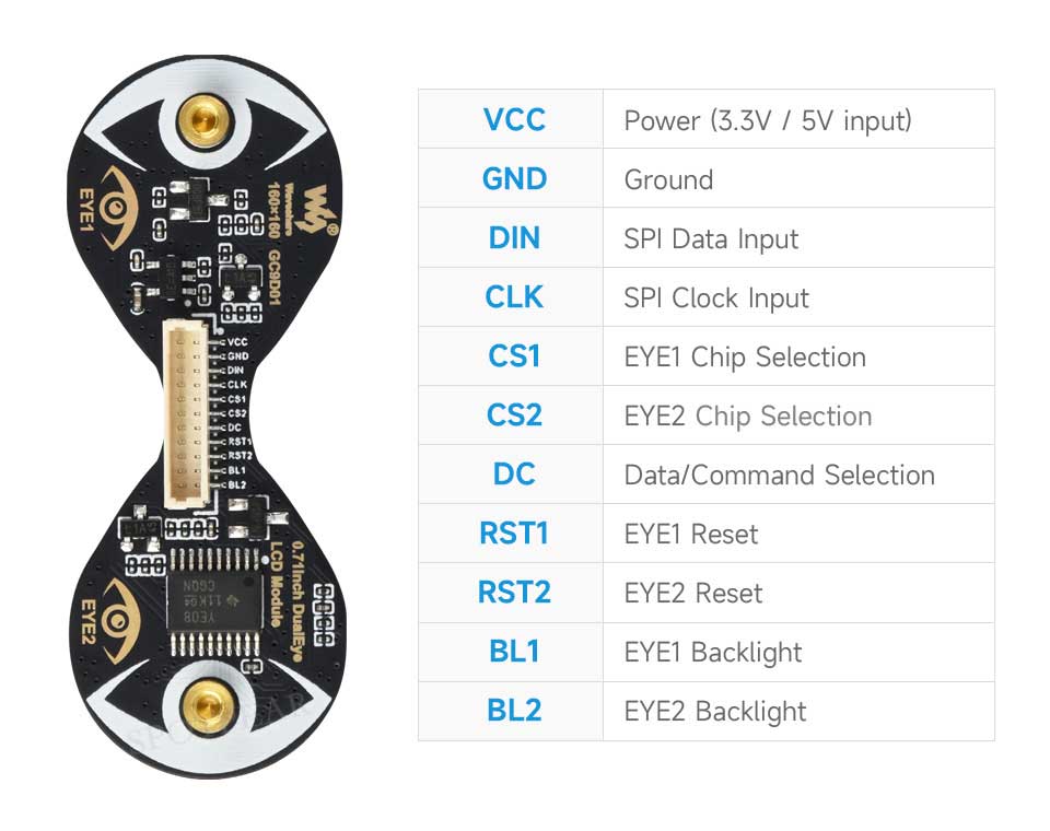 Electronic EYE 0.71inch Round Double LCD Display Screen Arduino Raspberry Pi ESP32 Pico STM32
