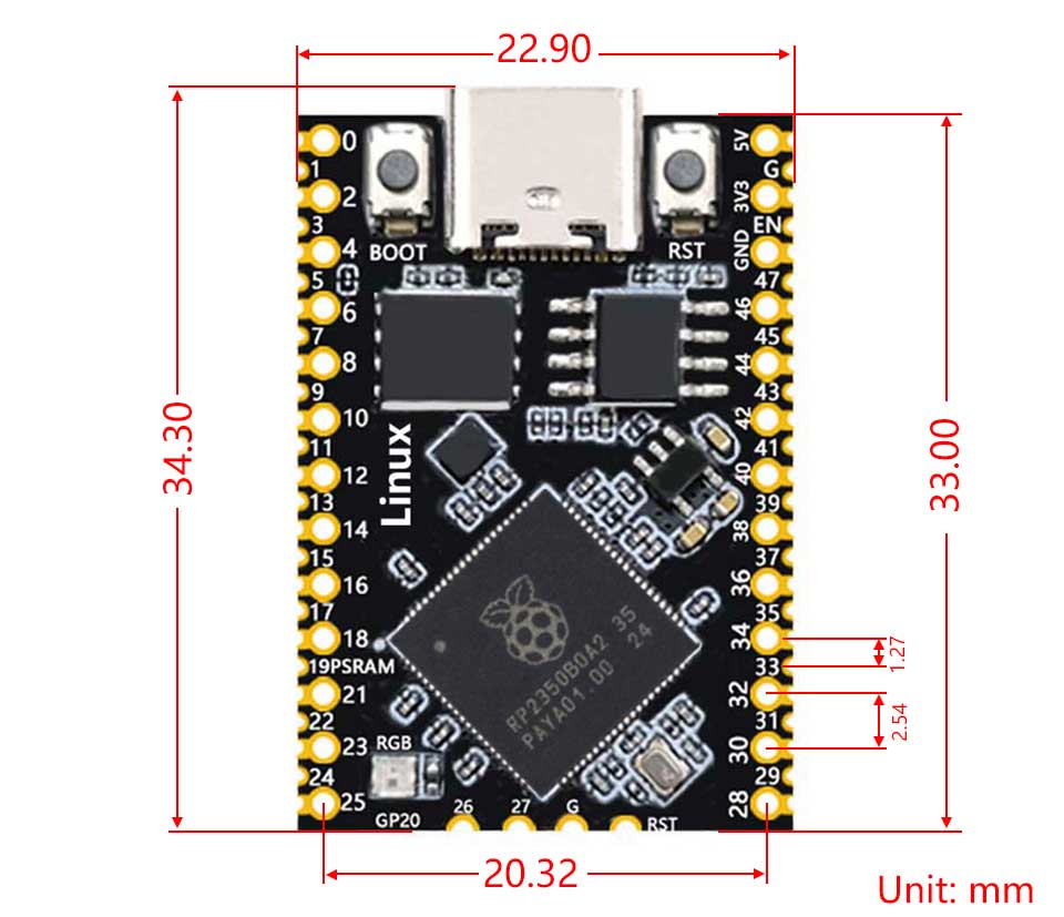 Raspberry Pi Pico 2 Tiny RP2350B RP2350-Linux Mini Development Board with PSRAM-8MB Or Without PSRAM
