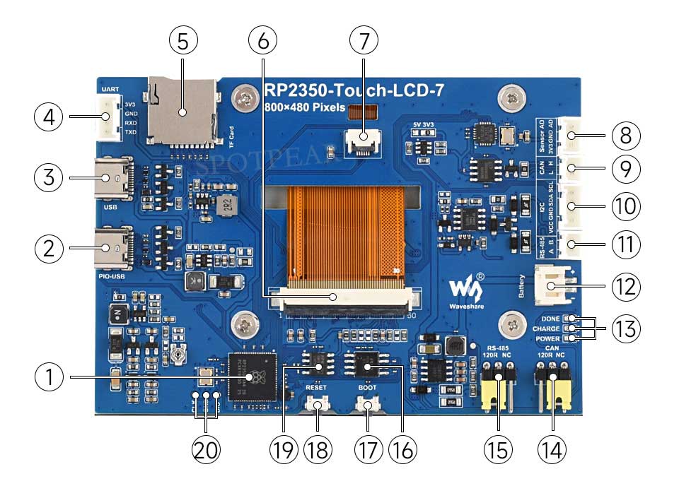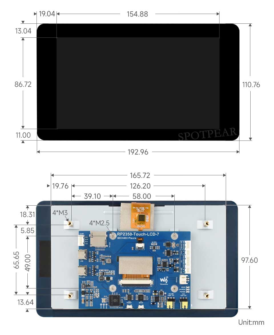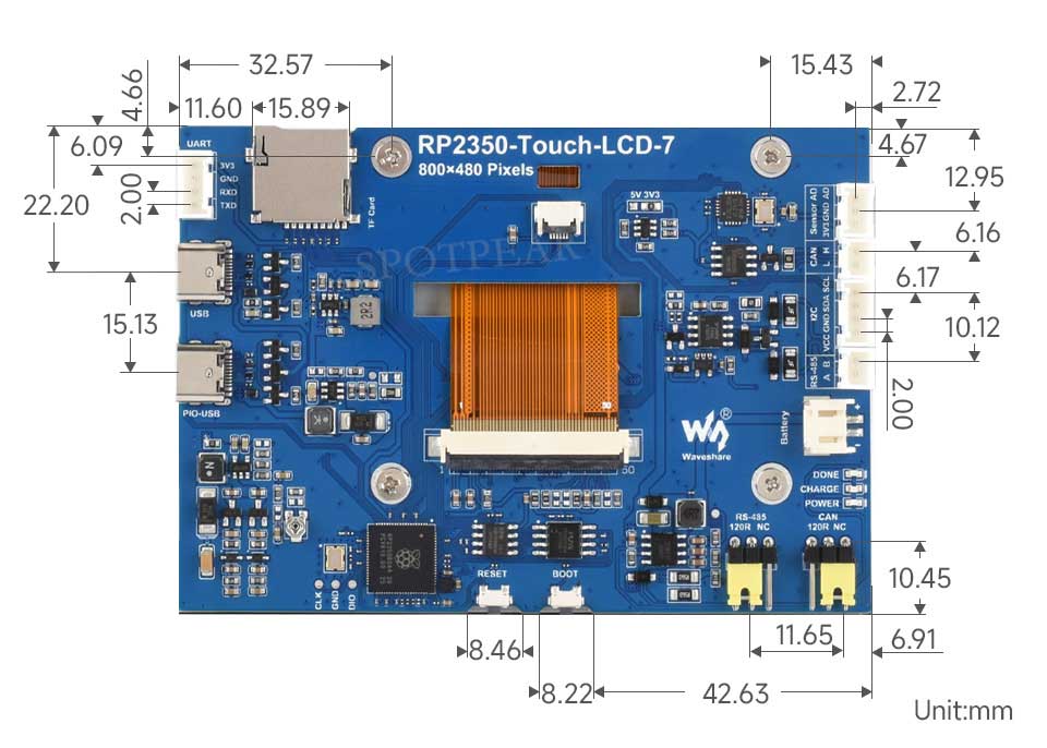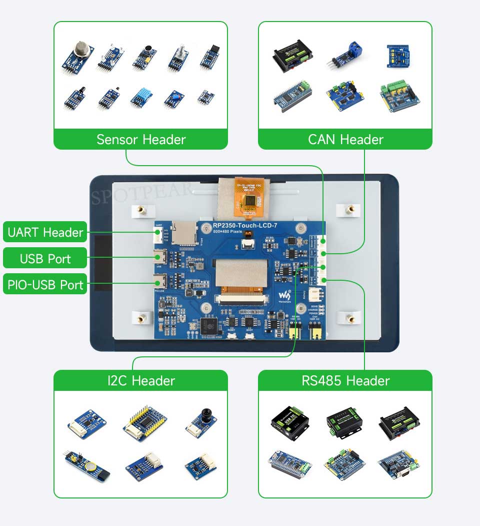 RP2350 7inch LCD Development Board, 800 × 480 Resolution, 65K Color, Supports Dual-core And Dual-architecture