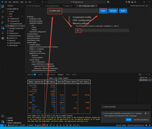 2. When the ESP-IDF project compilation fails, delete the build, managed_components, and dependencies.lock, and then compile again. If the error persists, check whether the ESP-IDF version and the CMakeList.txt in the project directory are correctly recognized