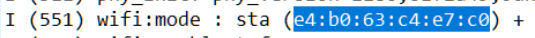 4】After clicking the operating mode, a string of information will pop up in the receiving area. When you see the line "wifi:mode:sta", remember the MAC address in the parentheses.