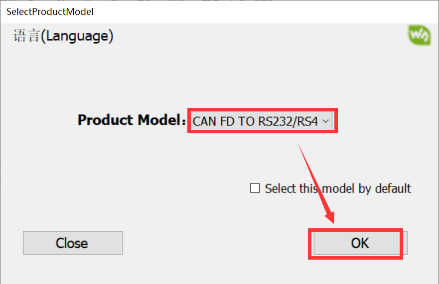 • Open WS-CAN-FD-Converter and select CAN FD TO ETH. (The software defaults to English and can be modified to Chinese)