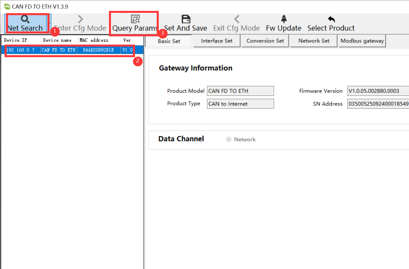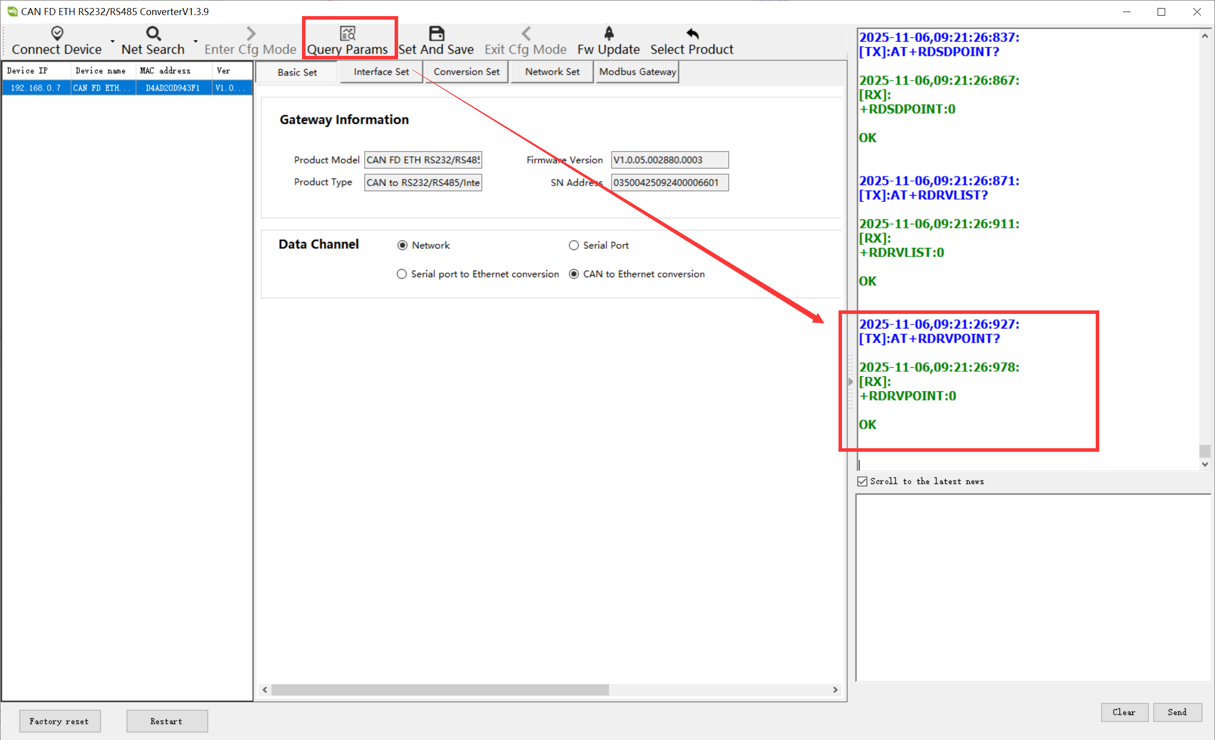 • If there is an error prompt in the message bar on the right, click "Read Params" again until no error occurs before proceeding to the next step