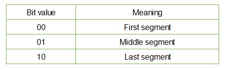 • Segment type: Occupies 2 bits (Bit6, Bit5), used to indicate the type of this message in segmented messages: