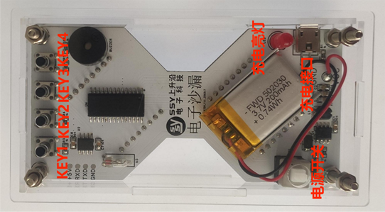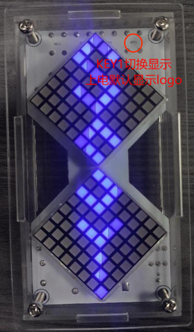 After powering on and displaying the logo, press key1 to switch to the default hourglass display interface with a one-minute timer.