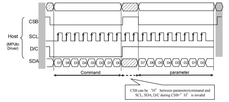 D/C (DC): Data/command control signal, write command (Command) when the level is low; write data (Data/parameter) when the level is high.