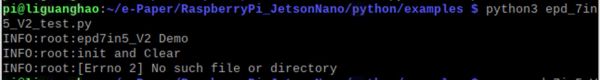 # Make sure it is in 2in15_e-Paper_B/RaspberryPi_JetsonNano/ cd python/examples/ python3 epd_2in15b_test.py
