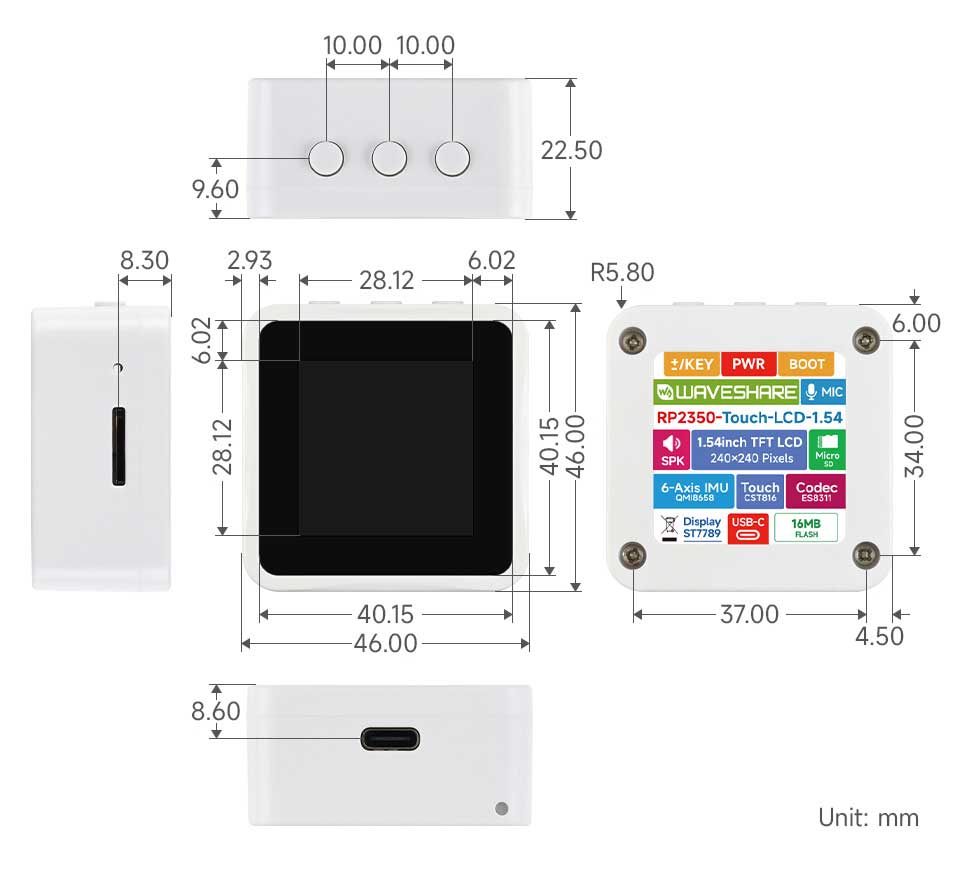 • Onboard 1.5inch LCD screen, 240 × 240 resolution, 65K colors