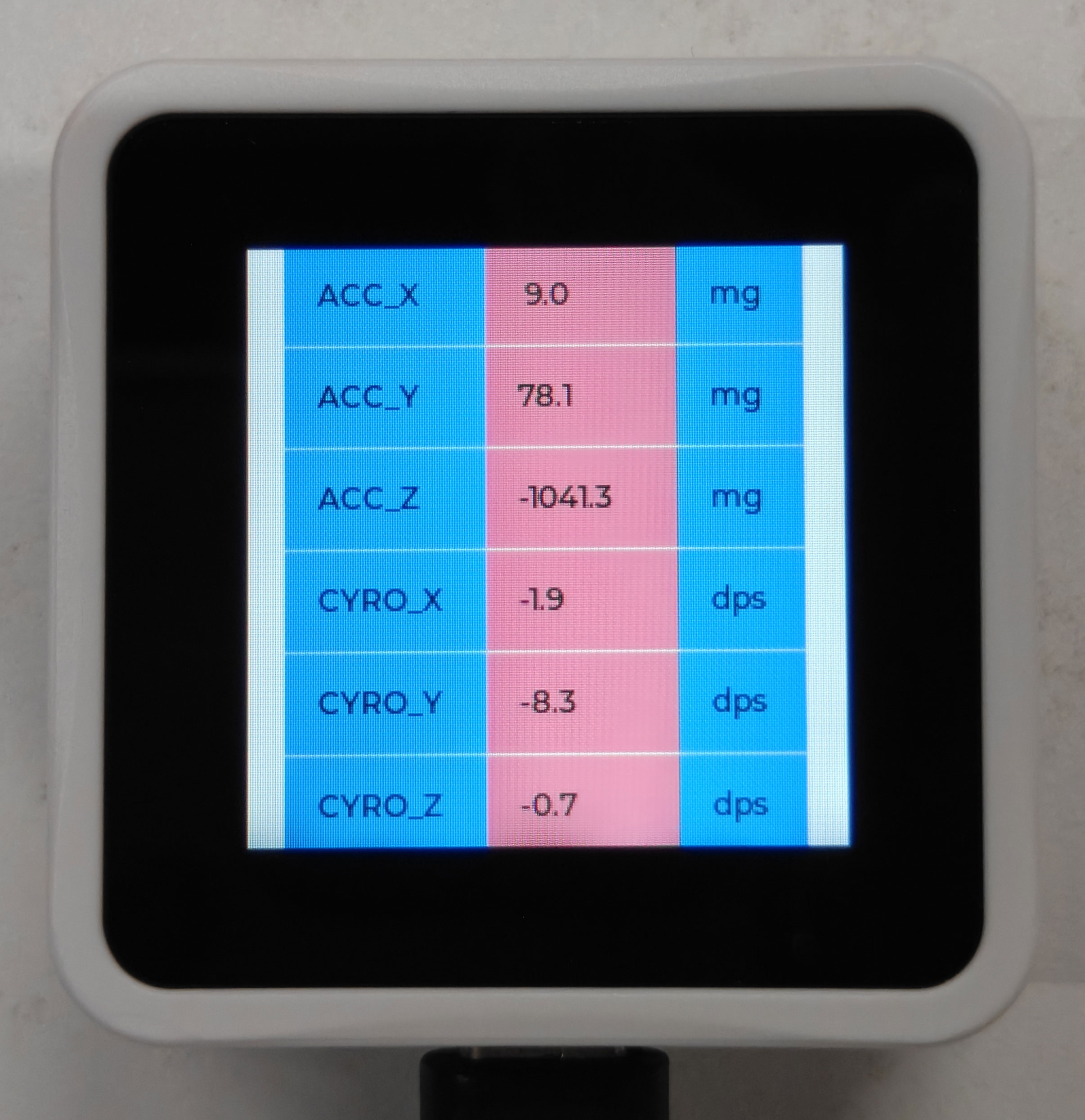• IMU.Read_XYZ(): Reads the six-axis sensor data.
