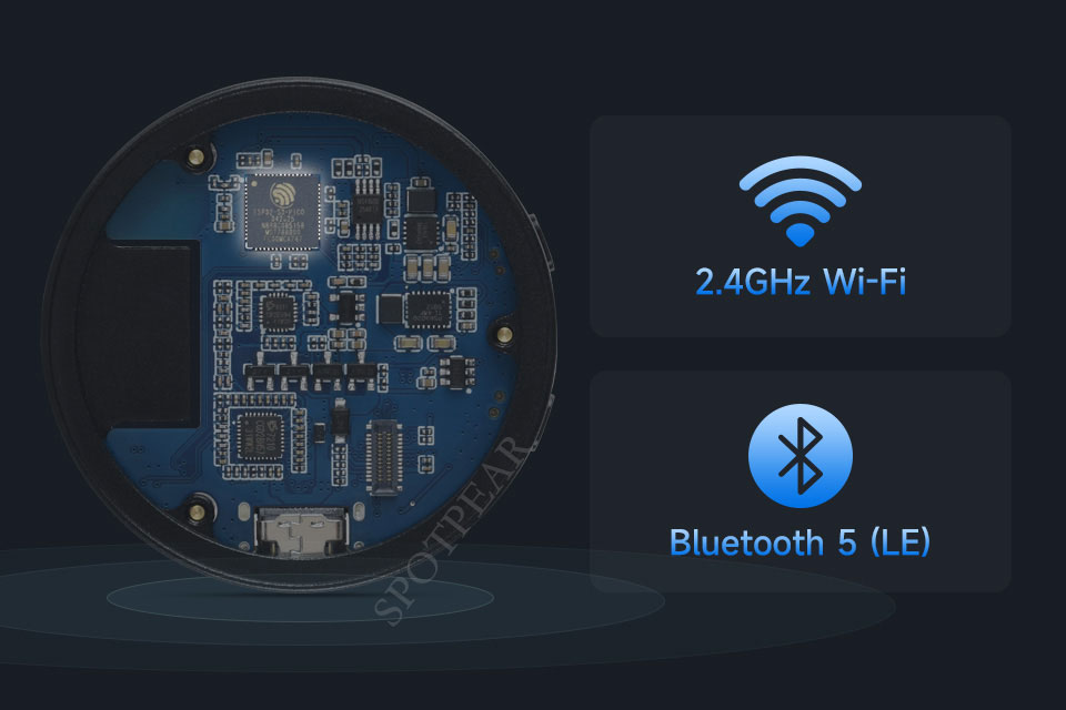 Supports 2.4GHz Wi-Fi (802.11 b/g/n) and Bluetooth 5 (LE).
