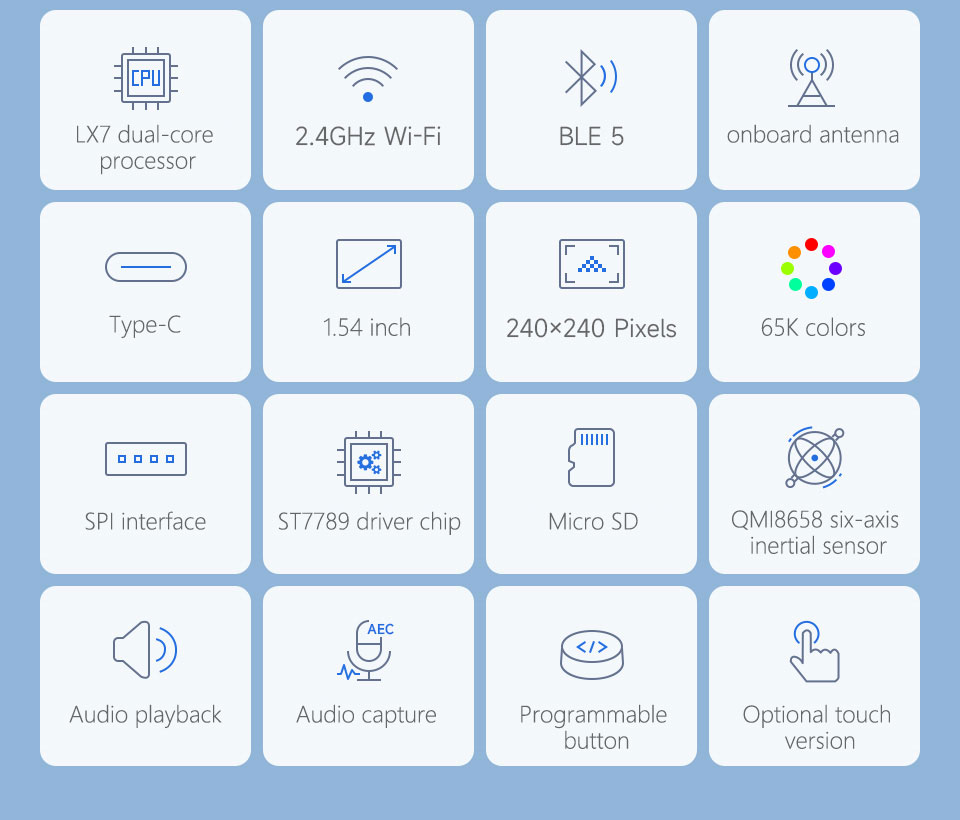 Designed by Waveshare, this product features a custom square plastic casing that is compact, stylish, and premium in texture. It is equipped with a 1.54-inch LCD, 6-axis sensor, dual-microphone array, and Micro SD card slot, providing the hardware foundation for display, sensing, audio, and multimedia storage.With this hardware, the device supports fun interactive games, voice wake-up, interruptible dialogue, noise reduction, and echo cancellation. It can connect to online AI large model platforms for intelligent voice interaction and continuous upgrades.The factory firmware includes AI chat, audio/video playback, electronic album, text reading, gravity ball, and more. It can be used directly as an AI chat toy or customized for extended and secondary development.