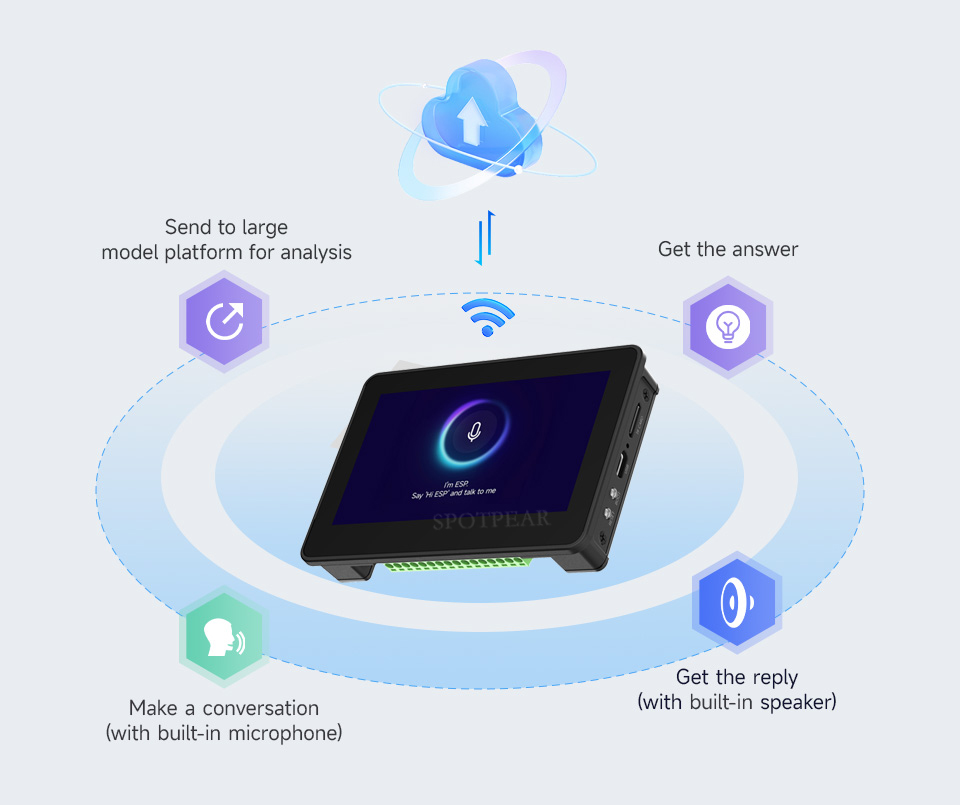 The SoC with Wi-Fi and Bluetooth, up to 240MHz operating frequency, integrated 8MB PSRAM and 16MB Flash - TF card slot
