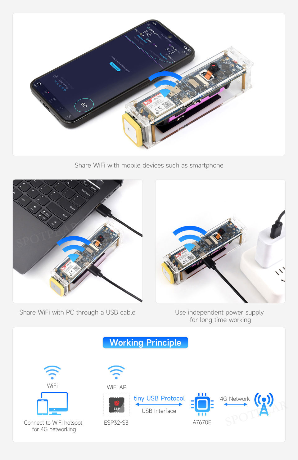 ESP32-S3 Is Connected To The A7670E Via USB To Enable 4G Networking While Simultaneously Activating WiFi AP Hotspot, Allowing Smartphones Or Other WiFi Terminals To Connect And Access Network