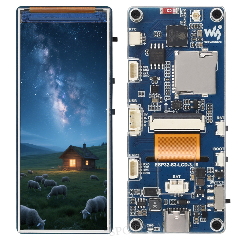 - Onboard 3.16-inch LCD display, 320 × 820 resolution, 64K color, communication interface uses RGB565
