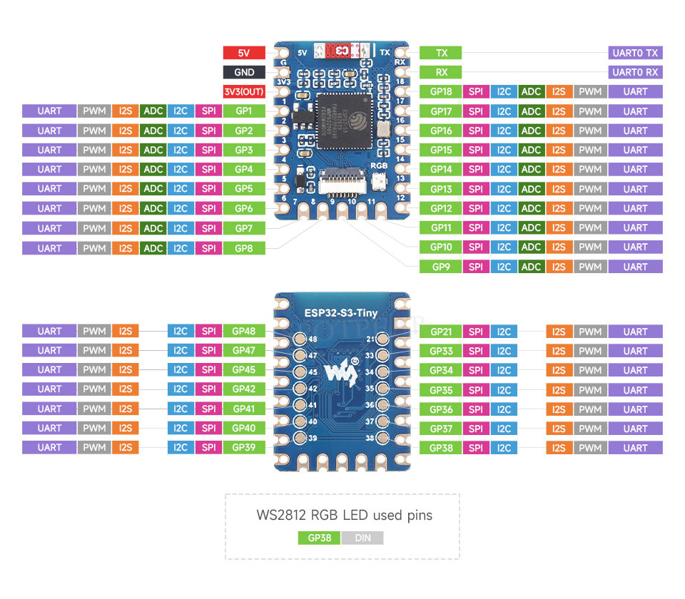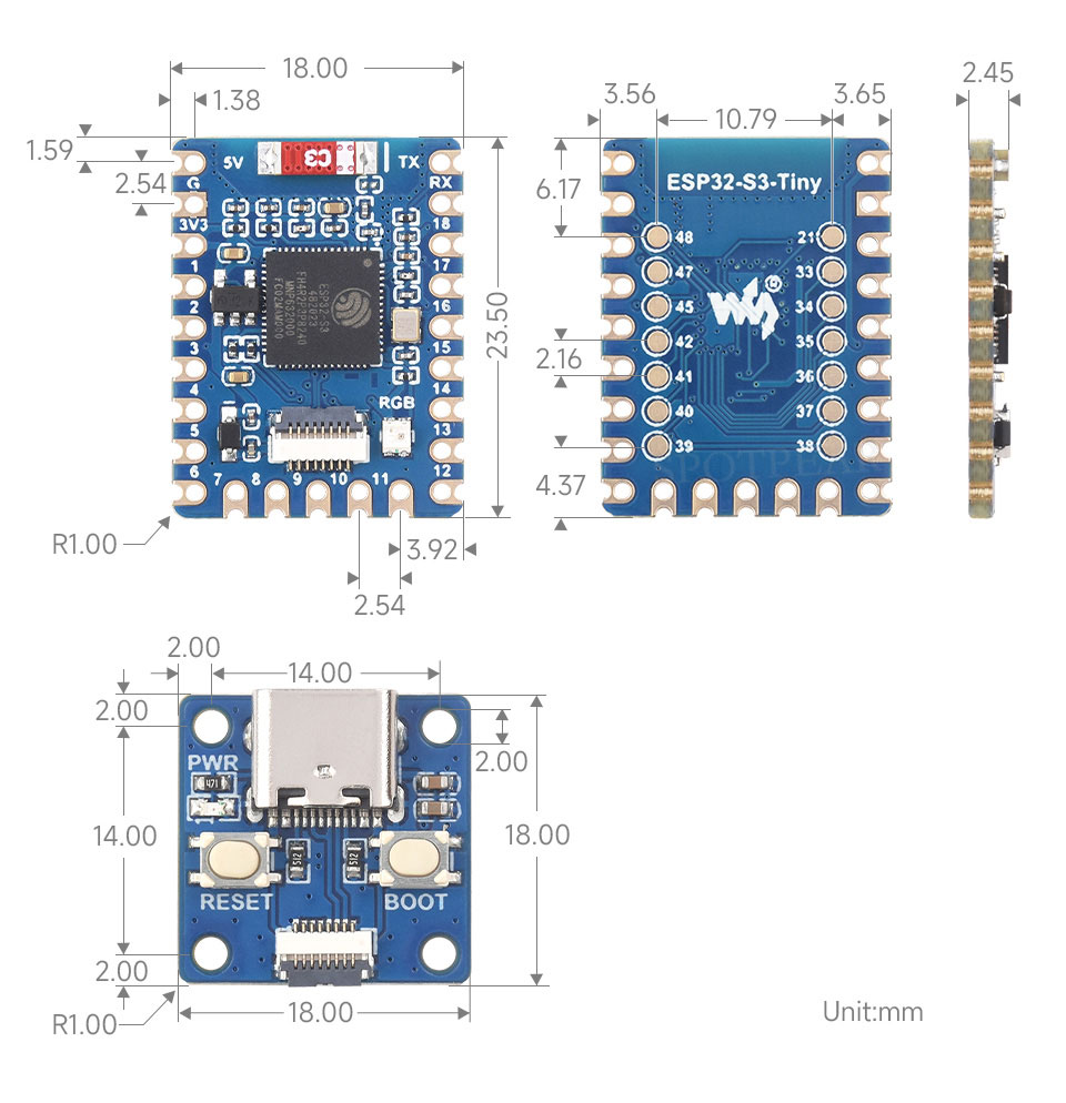 ESP32-S3 Mini Development Board, Based On ESP32-S3FH4R2 Dual-Core Processor, 240MHz Running Frequency, USB Port Adapter Board Optional