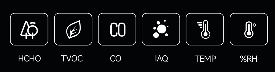Enables detection of HCHO, TVOC, CO, IAQ, temperature, and humidity