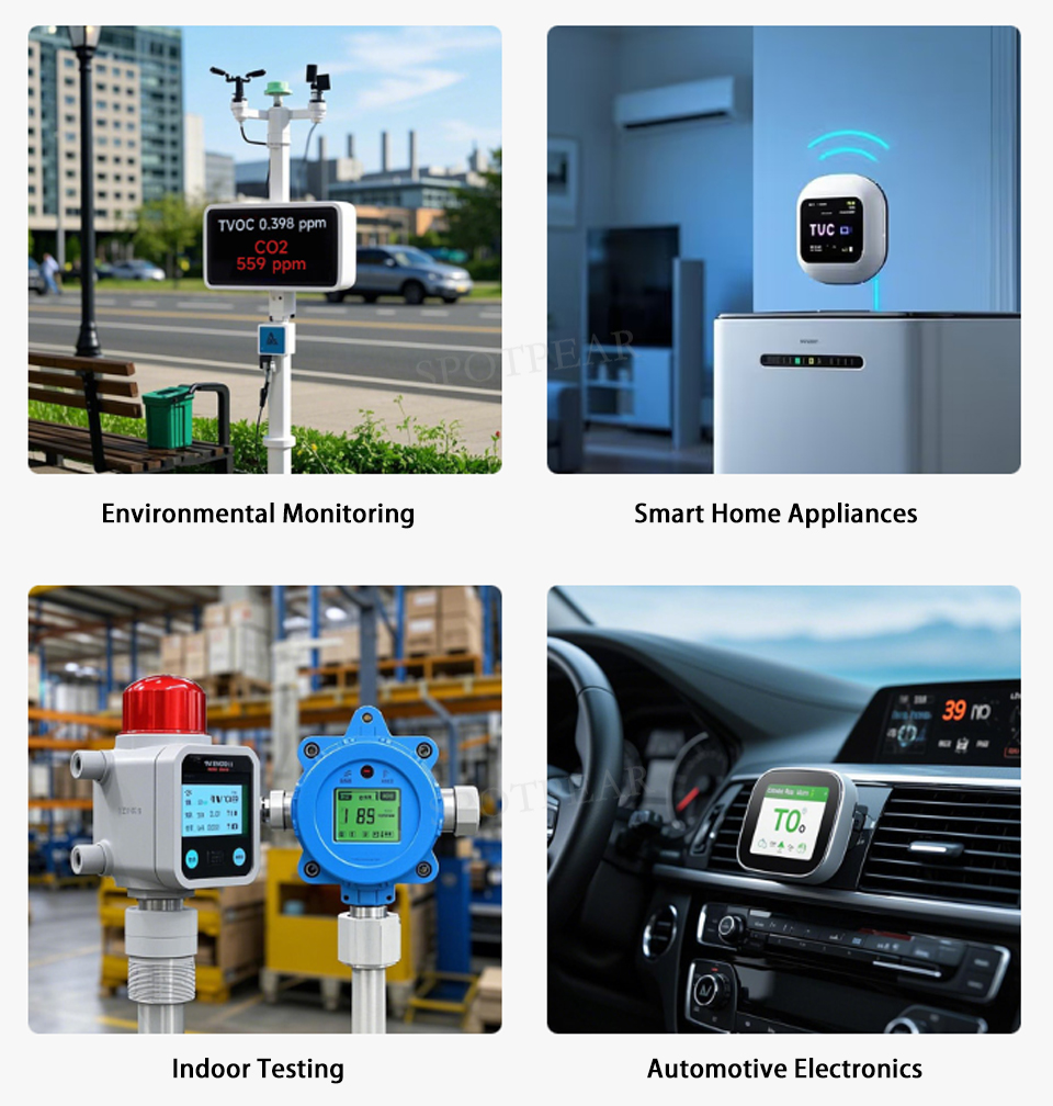 - Integrates detection of Indoor Air Quality (IAQ), Carbon Monoxide (CO), Total Volatile Organic Compounds (TVOC), Formaldehyde (HCHO), temperature, and humidity