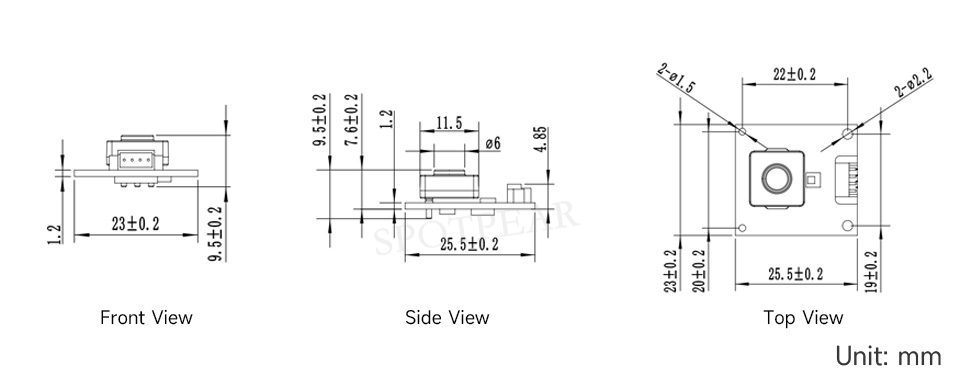 | DIMENSIONS | 23 × 25.5 × 9.5 (mm) | MOUNTING HOLE SIZE | 2.0mm |