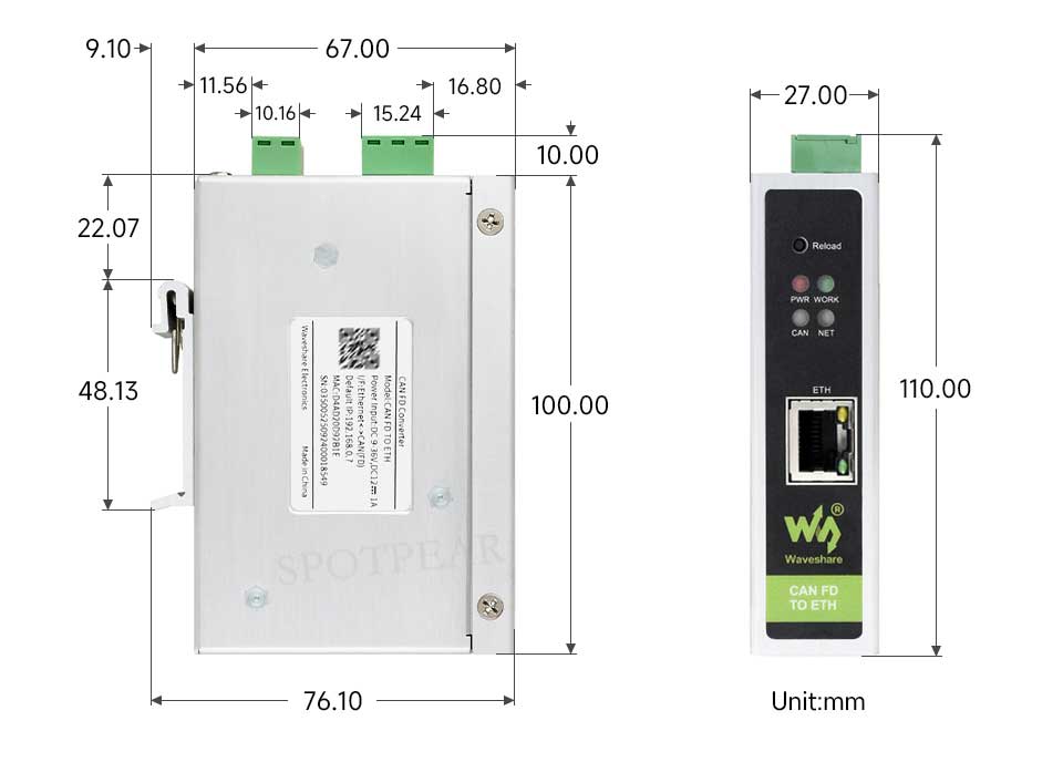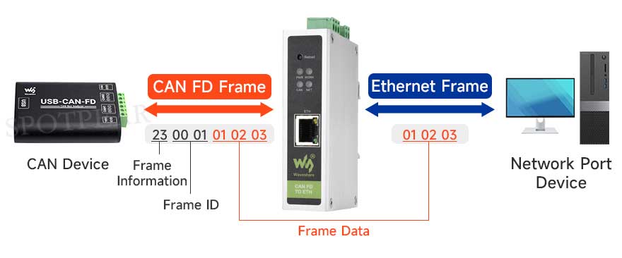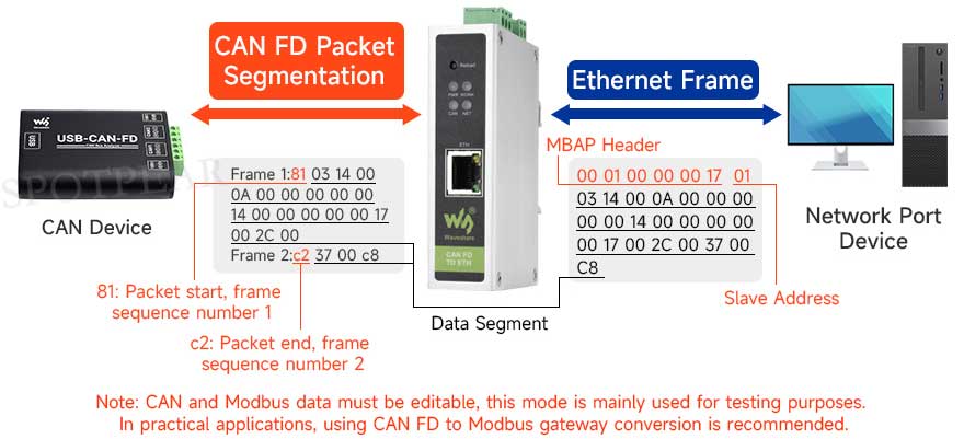 CAN FD Protocol Converter: Bidirectional Conversion Between CAN FD and ETH, Supports 5 Conversion Modes, Compatible with CAN 2.0A/2.0B Protocols, DIN Rail Mountable