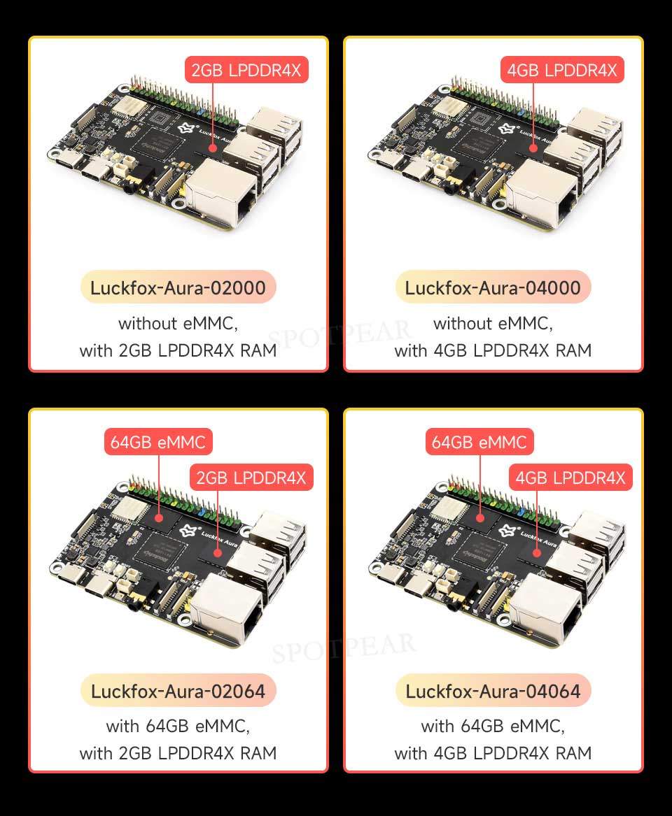 Luckfox Aura High-Performance Linux Development Board, Rockchip RV1126B Quad-Core 1.6GHz Processor, 3 TOPS Computing Power, 4K Encoding And Decoding, Options For RAM And eMMC