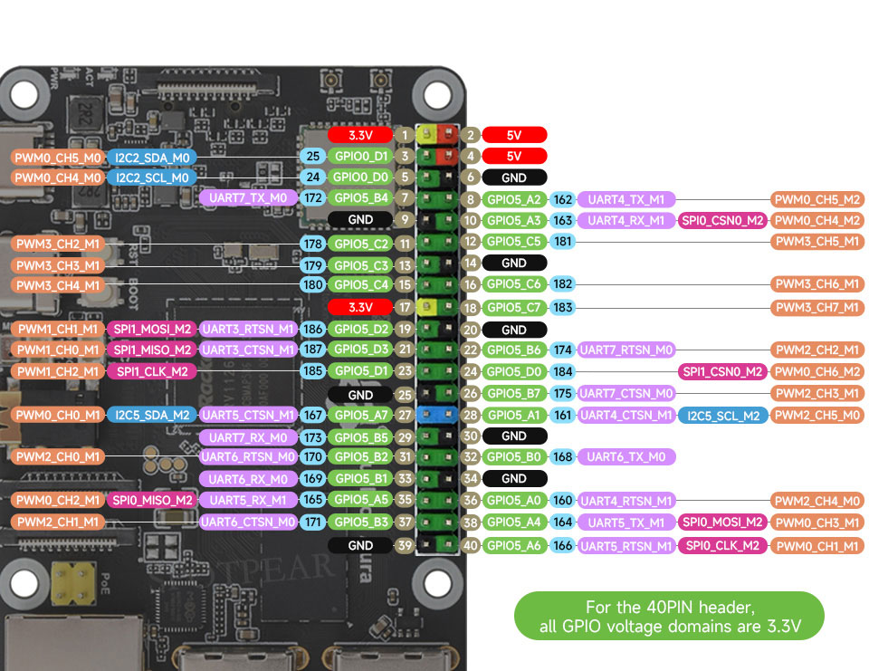GPIO40PIN header (compatible with some Raspberry Pi HATs)