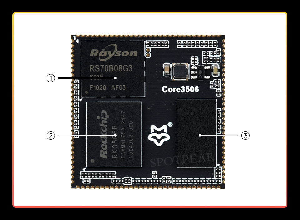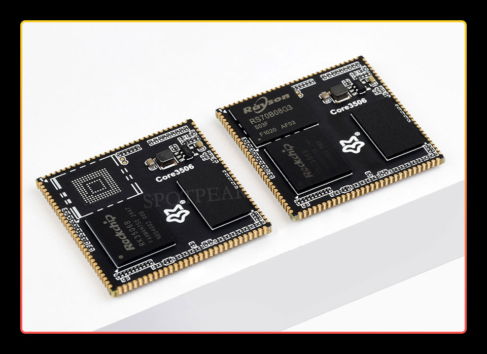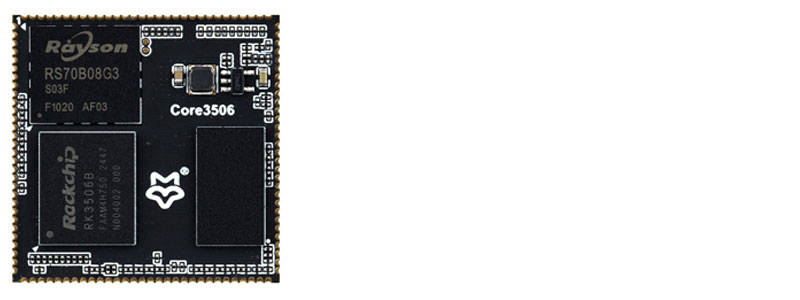 The Core3506 is a core board based on the Rockchip RK3506B chip with high performance and high expandability, designed to simplify hardware development. Adapting various interfaces via castellated holes, such as MIPI DSI, RMII Ethernet interface, and USB, etc. which is suitable for various application scenarios. The low-speed interfaces utilize Rockchip Matrix IO design which supports multiplexing 98 function signals on GPIO pins, allows for flexible configuration of interfaces like PWM, UART, I2C, SPI, and I2S for quick development and debugging. It enables quick design verification or direct integration into products, thereby shortening the R&D cycle. Provides option of onboard 8GB eMMC storage to meet different storage requirements.