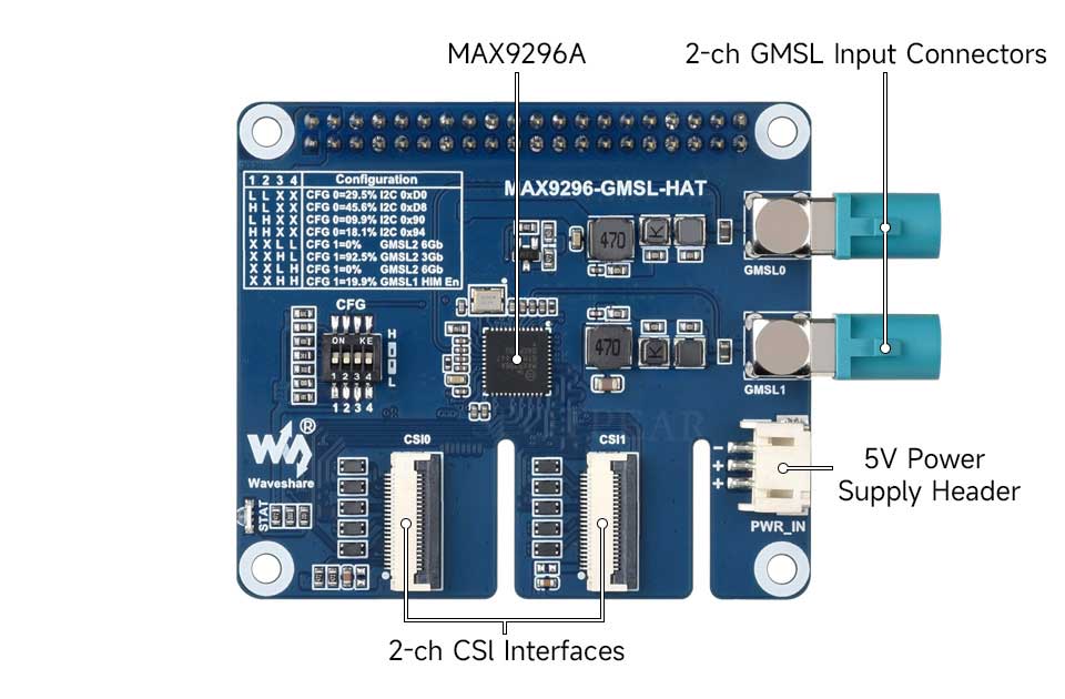2-Ch GMSL Camera HAT, Equipped With MAX9296A Deserializer, High-Speed And Low-Latency Serial Transmission, Compatible With Raspberry Pi 5 And Jetson Orin NX/Nano