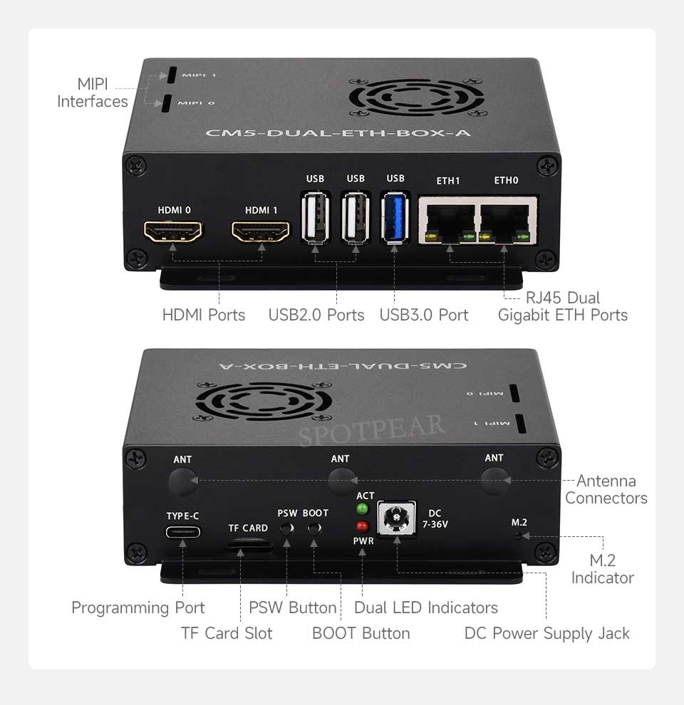 | storage | Onboard Micro SD card slot (for CM5 version without eMMC) |