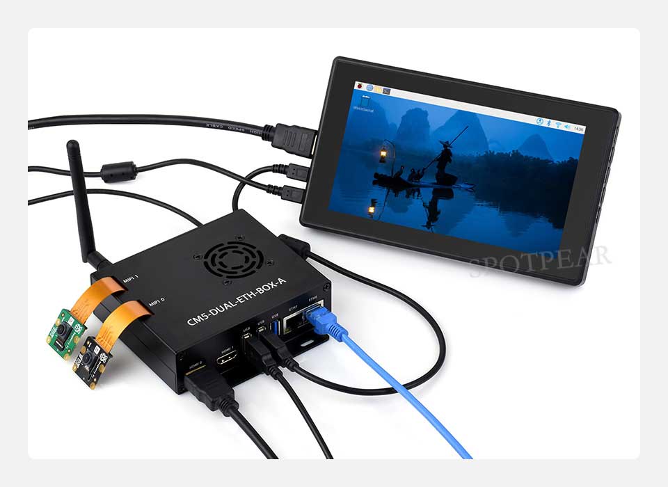 Raspberry Pi CM5 Gigabit/2.5G Dual Ethernet Port Expansion Board with RJ45 Ports, Dual 4K Output, Dual MIPI, and 40-pin GPIO