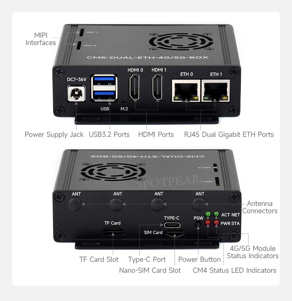 | POWER INPUT | 7V~36V wide voltage range DC jack, 5V 5A Type-C port |