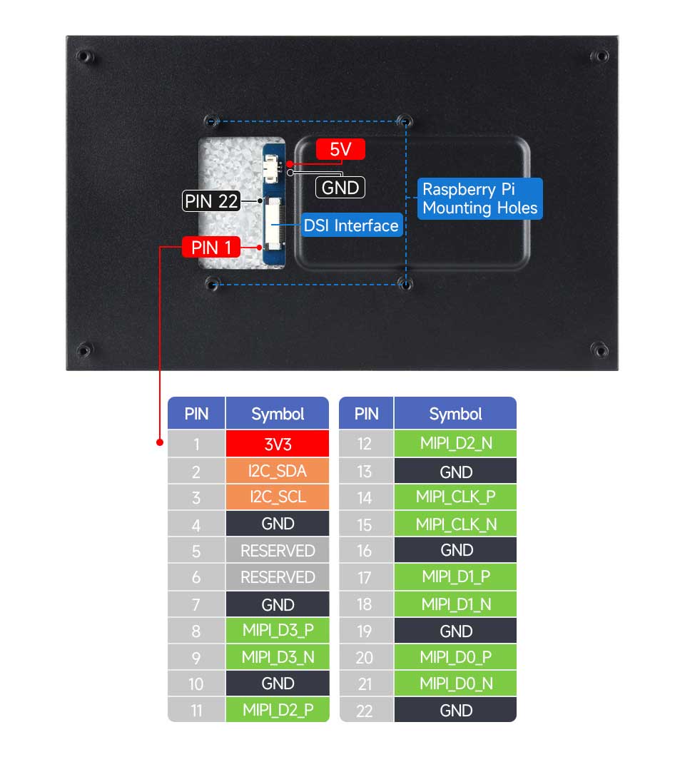 Raspberry Pi 7 inch DSI MIPI LCD TouchScreen Display 7inch 1024x600 For Luckfox Lyra RK3506/ESP32-P4/Luckfox Omni3576