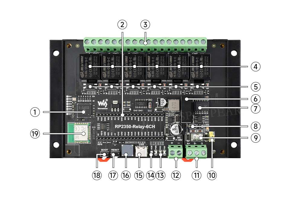 Based on RP2350 master control, supports RS485, Pico and other peripheral interfaces