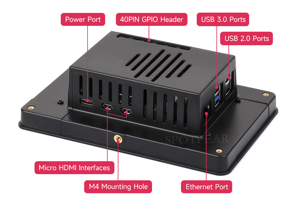 The Raspberry Pi operating system provides a touch screen driver that supports five-finger touch and an on-screen keyboard, eliminating the need to connect an additional keyboard or mouse.
