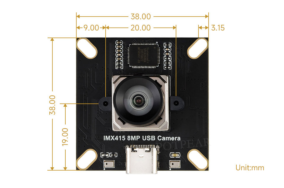 IMX415 8MP High-resolution USB Camera Module, IMX415 Sensor Chip, USB2.0 Port, Onboard Dual Microphones, Distortion-free