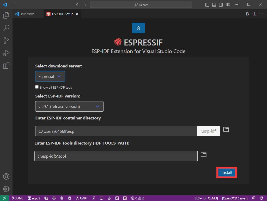 - Note: If you have installed ESP-IDF before, or failed to do so, please be sure to delete the file completely or create a new path without Chinese characters