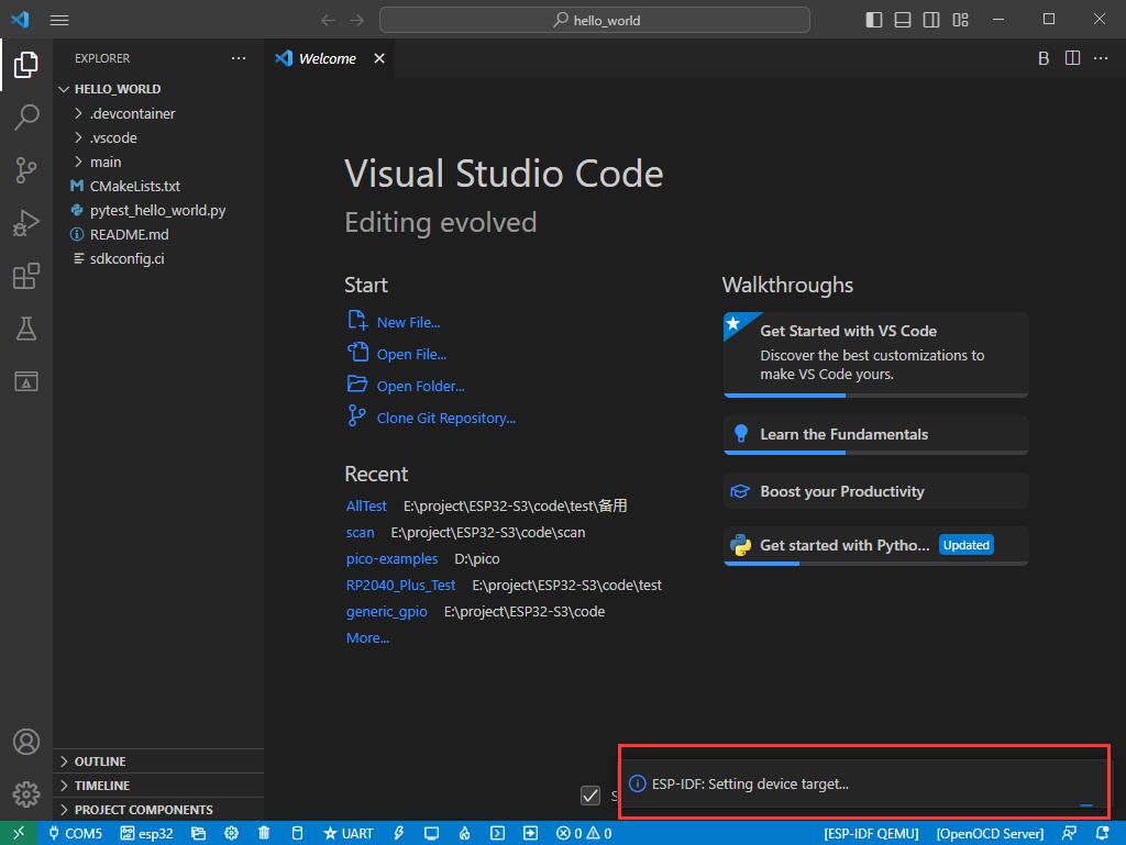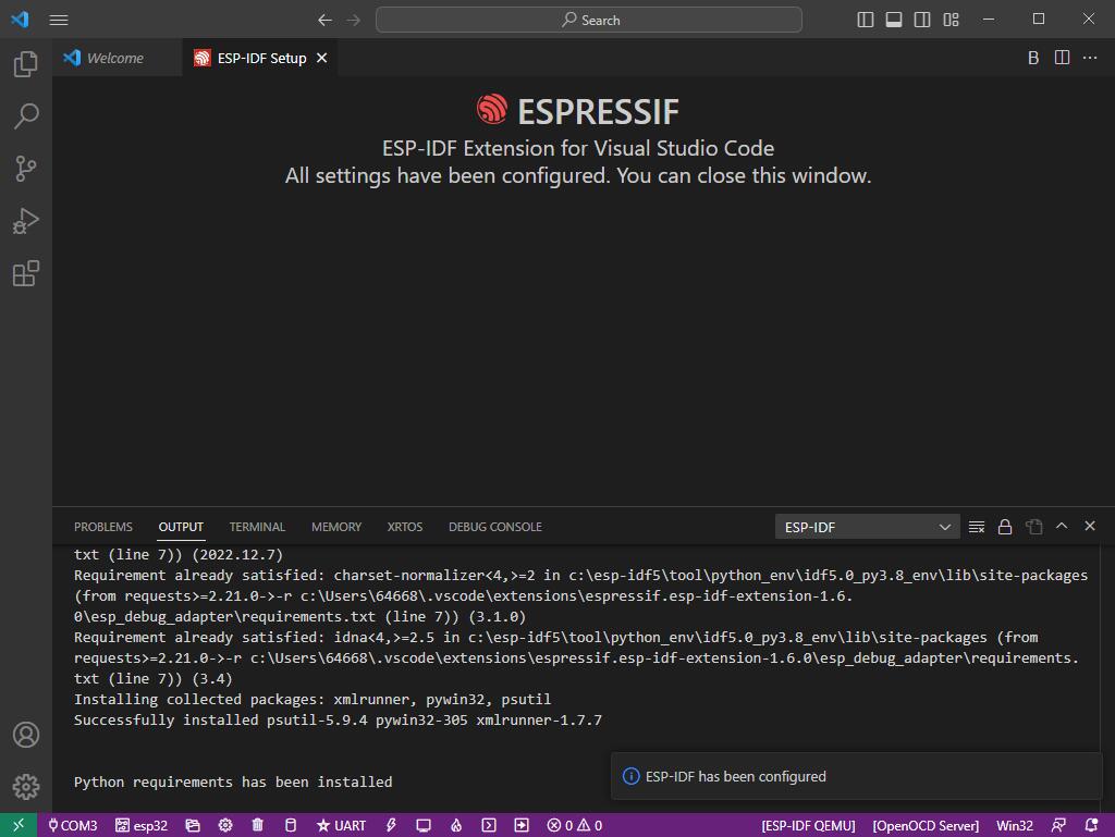 - During this process, the ESP-IDF may take up a lot of CPU resources, so it may cause the system to lag