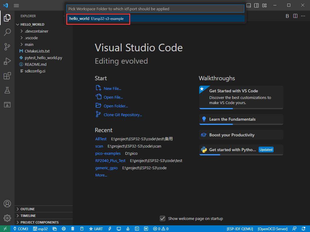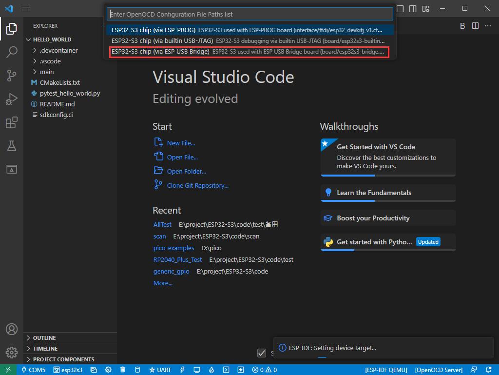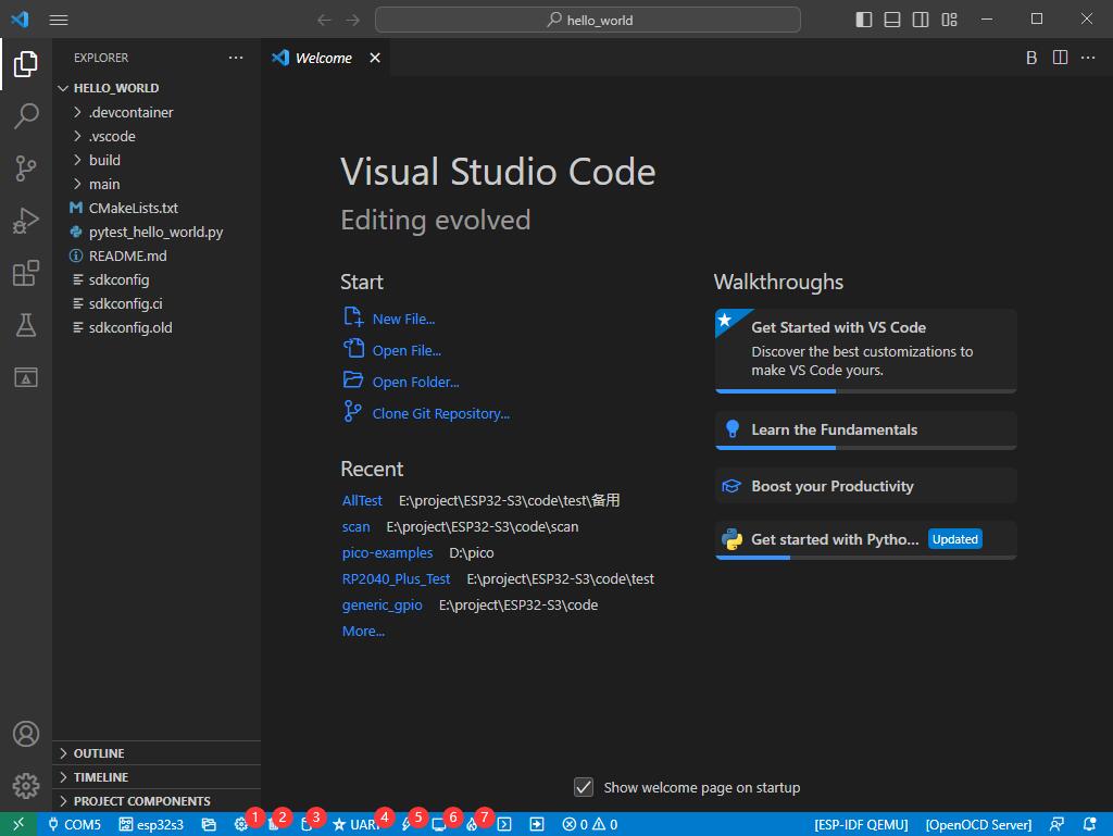 - ①SDK configuration editor, supports modifying many features and configurations of ESP-IDF