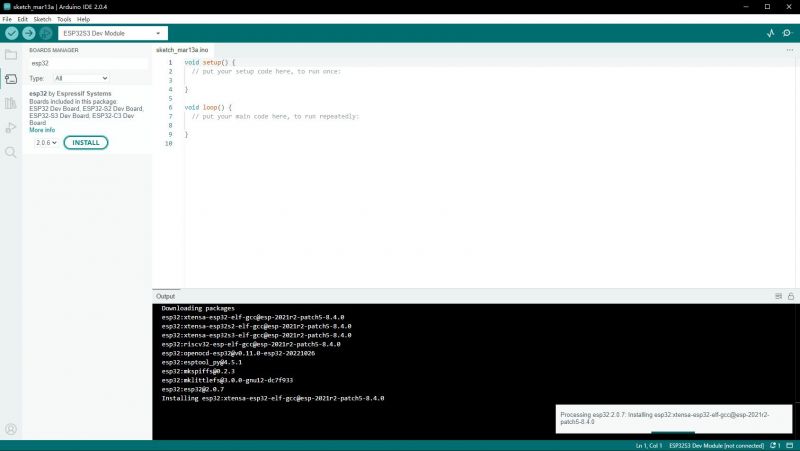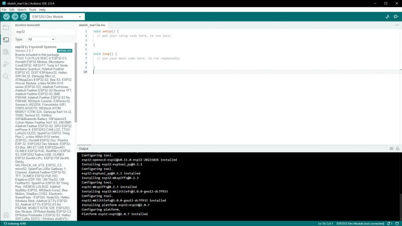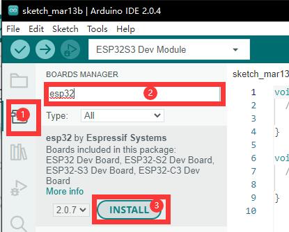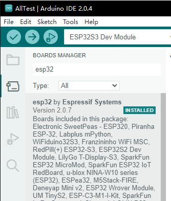 - Open Arduino, then open the board manager, you can see that esp32-arduino has been installed